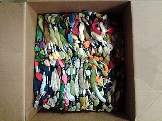 Graag bied ik een grote doos met 750 strengen borduurgaren te koop aan.
